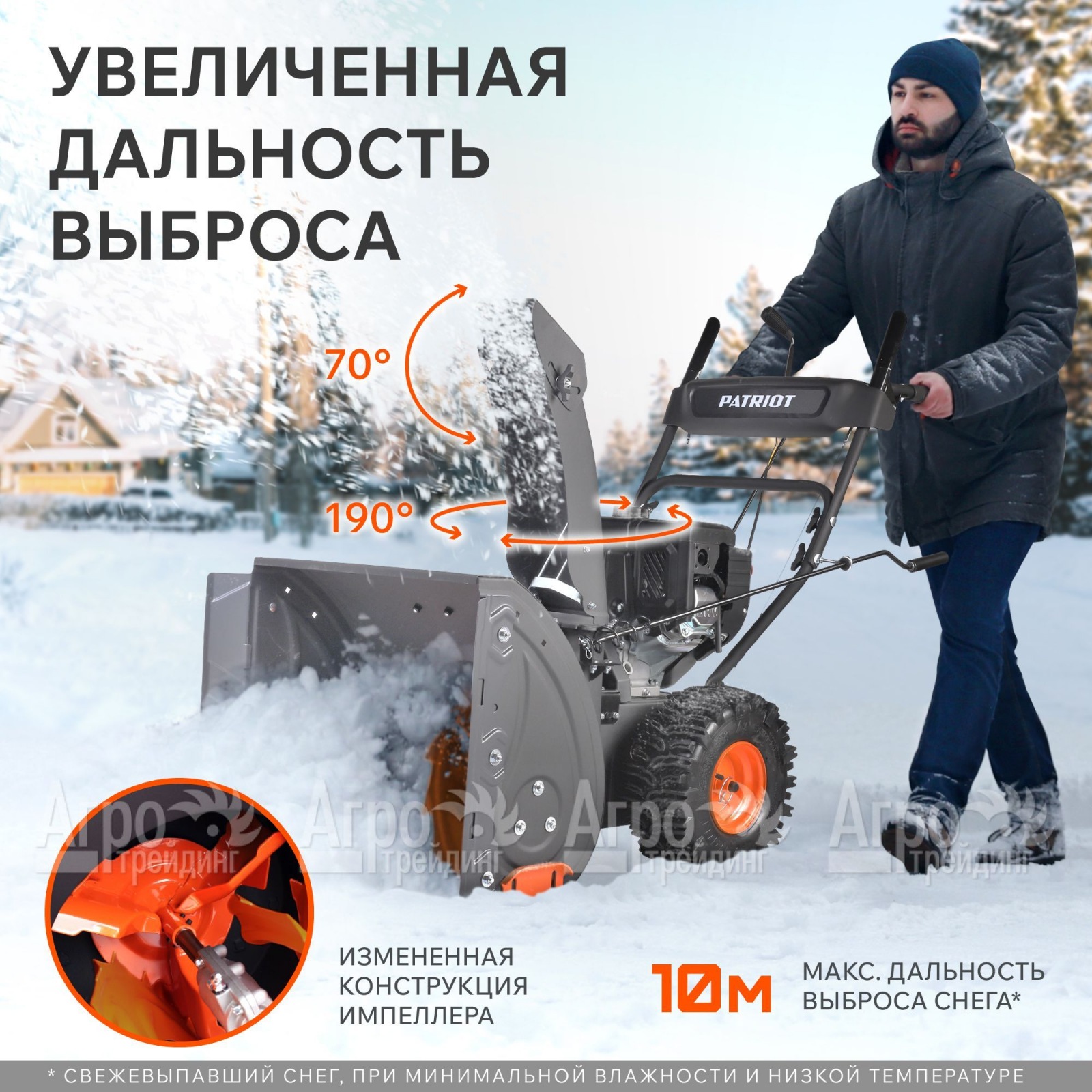 Угол выброса снега: 190°